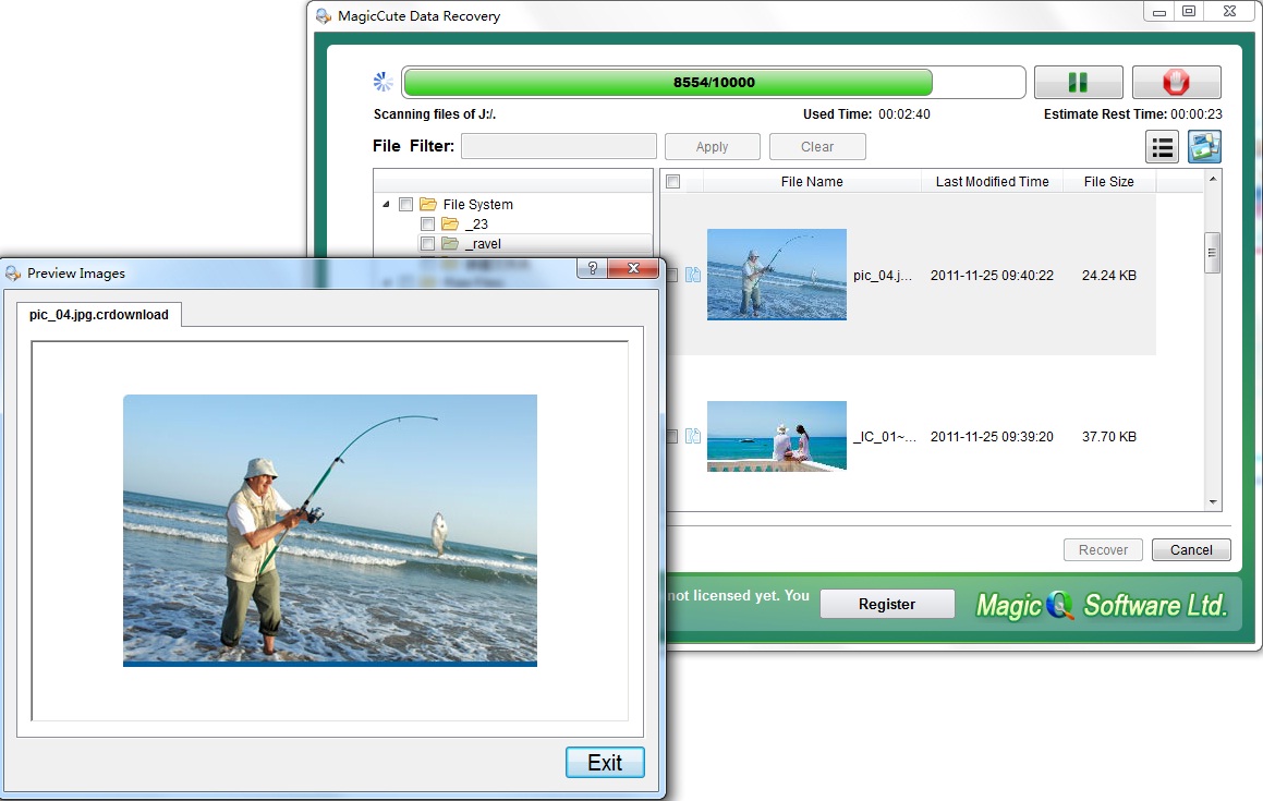 The program can recover files damaged by virus attacks, power failures and software faults or files from deleted and formatted partitions. If a program does not use Recycle Bin when deleting files, MagicCute Data Recovery can restore such files. It can also recover files that have been emptied from Recycle Bin.